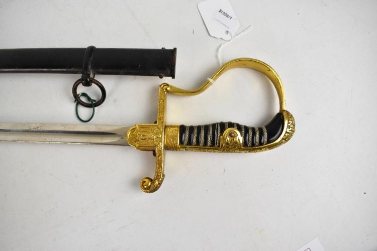 Lot 53A of 679: A Third Reich officer's dress sabre, the fullered blade with marks for Puma Solingen, blade length 80cm, the gilt hilt with eagle, Swastika and oak leaf detail to silver bullion wire-work ribbed grip, in metal scabbard with single ring. Provenance: Directly brought back from the War by the father of the vendor who served with 156 Parachute Brigade at Arnhem.