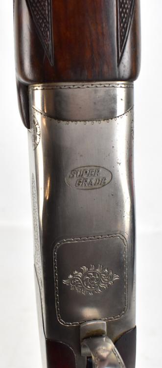 Lot 12A of 679: ***SECTION 2 SHOTGUN LICENCE REQUIRED*** WINCHESTER; a 12 gauge super grade over under ejector shotgun, the 28" fixed choke barrel chambered for 2 3/4", mounted with checkered walnut stock and action with tight foliate scrolling detail, SN:K183221.