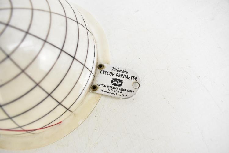 Lot 47 of 922: T GERRARD & CO LTD; a 20th century eye autonomy, height 10cm, together with a Krimsky eye cup perimeter, diameter 19cm (2).