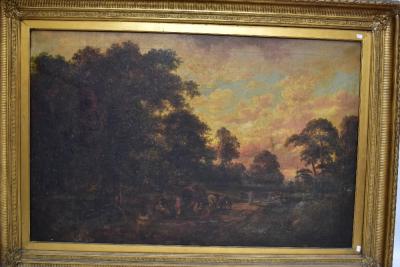 Lot 357 of 922: FRANZ HOEPTNER; a large oil on canvas, rural landscape with travellers’ camp by roadside, signed lower right, 91 x 141cm, in gilt gesso frame (af).