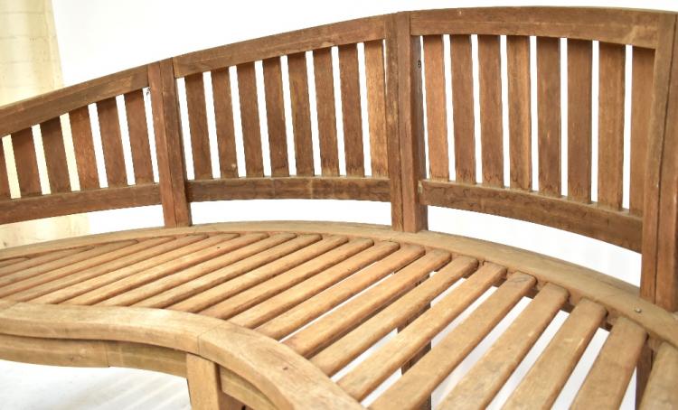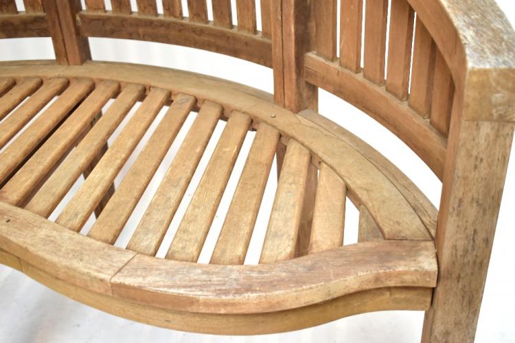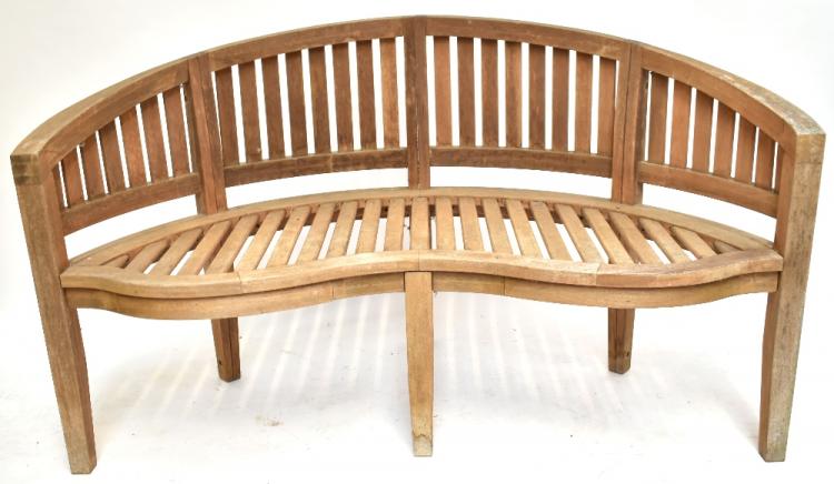 Lot 706 of 922: SCANCRAFT; a Danish teak serpentine fronted garden seat, length 151cm.