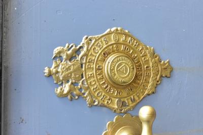 Lot 708 of 922: GEORGE PRICE CLEVELAND WORKS WOLVERHAMPTON; an 'Improved Patent' cast iron safe, height 69cm, depth 54.5cm, with one key.