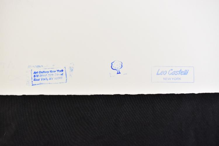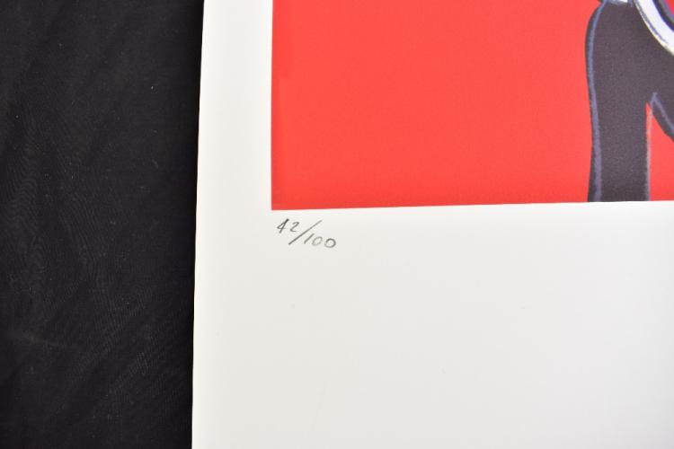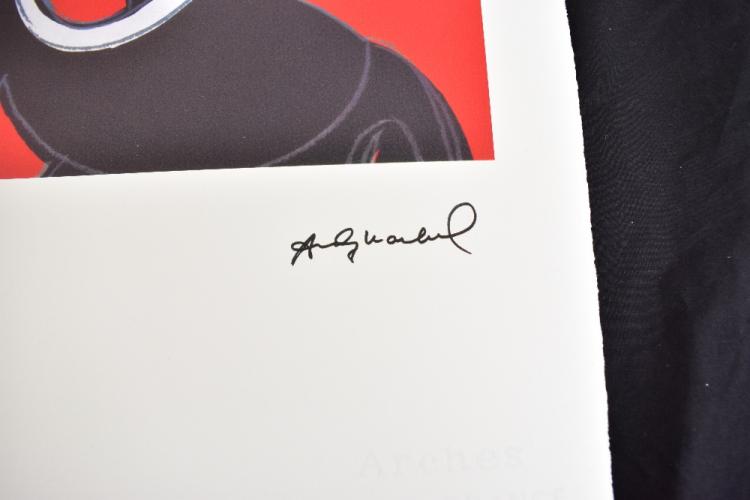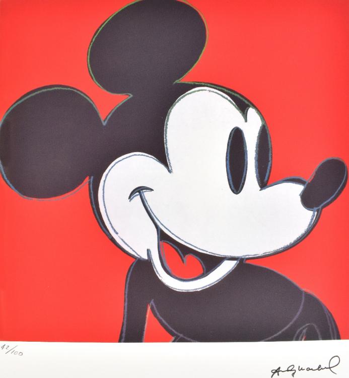 Lot 9 of 1719: AFTER ANDY WARHOL; lithograph on wove Arches paper with deckled edges, ‘Mickey Mouse (Red)’ (1978), printed signature to stone, no. 42/100, pub. Georges Israel (blind stamp recto) and Leo Castelli Gallery New York (stamp verso), the image 32.4 x 32.4cm, the sheet 56.4 x 38.2cm, loose.