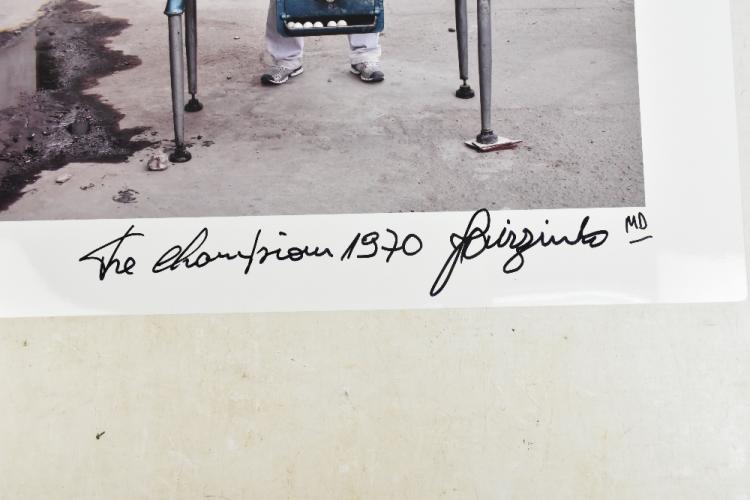 Lot 38 of 1719: MICHAEL DONALD; a rare collection of 34 photographic prints, 'Brazil to Brazil', each signed by the artist and the player who scored in the FIFA World Cup Final between 1950 and 2014, players include Pelé, Geoff Hurst, Carlos Alberto Torres, Gerd Müller and Paolo Rossi, image size 32cm x 43cm, boxed. (D) In 1930, 69,346 fans packed into the Estadio Centenario in Montevideo to see Uruguay beat rivals Argentina 4-2, and from this first final up until 2018 remarkably only fifty-eight players had
