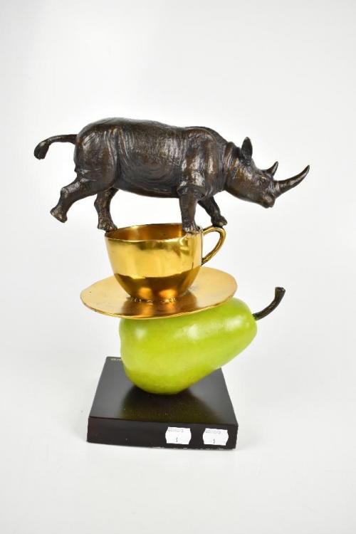 Lot 44 of 1719: GILLIE & MARC; a contemporary bronze sculpture, 'The Rhino Just Wanted a Coffee and Pear', signed and numbered 8/25 to plinth base, complete with Certificate of Authenticity, height 31cm.