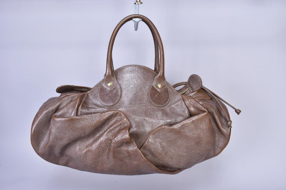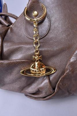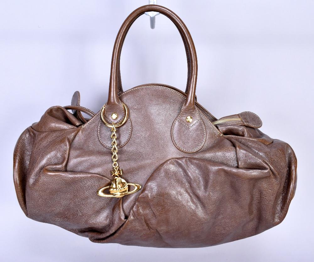 Lot 1046 of 1719: VIVIENNE WESTWOOD; a brown soft leather handbag with large gold tone maker's logo VW bag charm, 50 x 30 x 10cm, with dust bag.