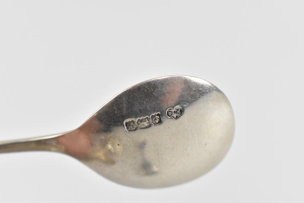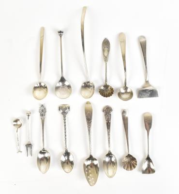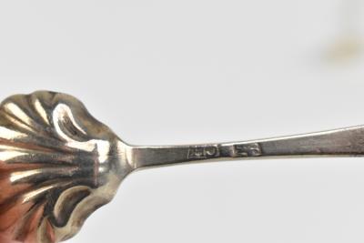 Lot 1783 of 1719: A group of variously hallmarked silver spoons of varied size and form including a seal top example with engraved lion rampant device and motto ‘London Scottish Strike Sure’ to bowl, Elkington & Co, Birmingham 1923, a preserve spoon by Joseph Griffiths & Sons, Birmingham 1904, a Holmrook Rifle Club spoon, a sifting spoon by J.S., Dublin, salt spoons with scallop moulded bowls, etc, approx 4.3ozt/136g.