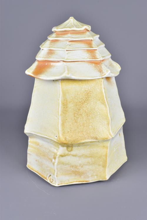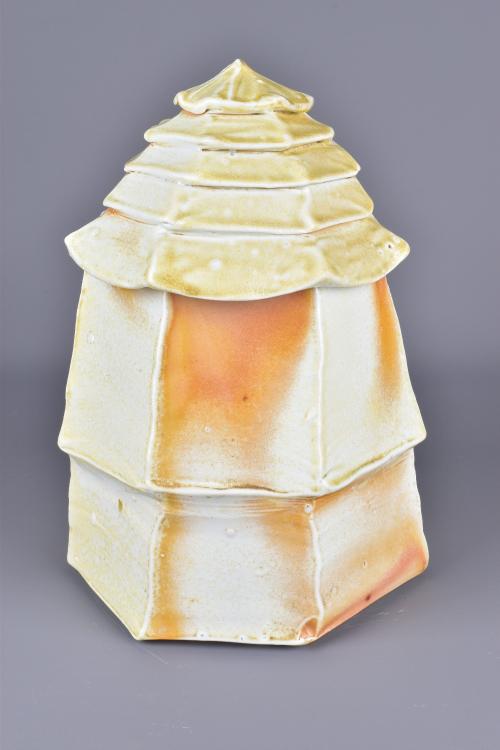 Lot 31 of 1051: CHRIS BASKIN; a cut sided soda fired porcelain jar and cover, impressed CB mark, height 25.5cm.