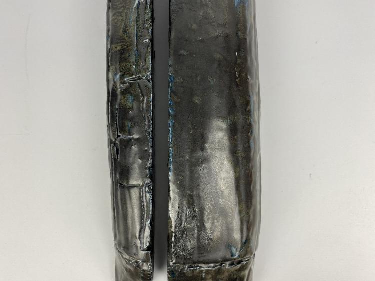 Lot 346 of 1051: BRAD EVAN TAYLOR (born 1964); a two-piece stoneware sculpture covered in metallic glaze, length 49.5cm (2). Taylor is Associate Professor of Art/Chair of Ceramics, University of Hawaii at Manoa. His sculpture is inspired by landscape, materials-science and geology.