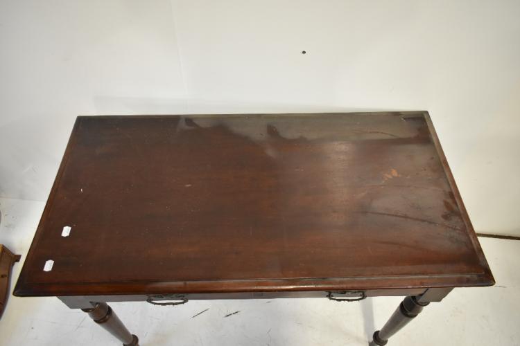 Lot 1483 of 1934: A late 19th century mahogany two drawer side table on turned supports, length 103cm, depth 53.5cm, height 74cm.