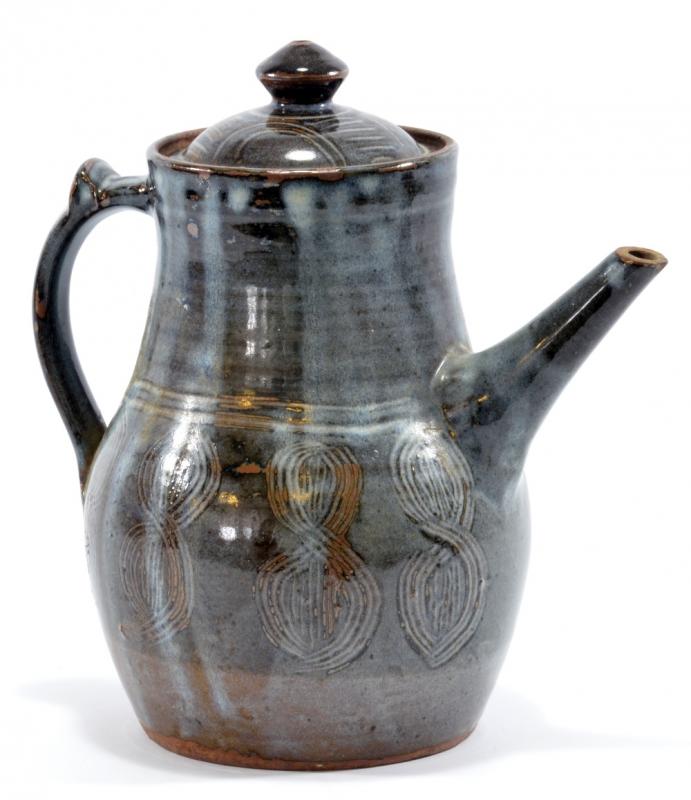 Lot 63 of 668: BAWA USHAFA for Abuja Pottery; a stoneware coffee pot covered in blue/grey glaze, impressed marks, height 23.5cm.
