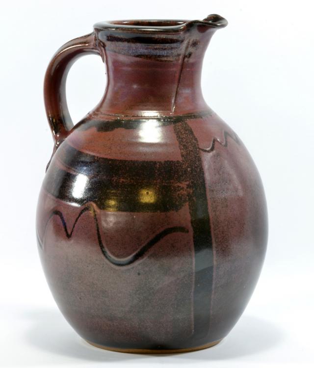 Lot 69 of 668: MICHAEL CASSON (1925-2003); a stoneware jug, iron rich glaze and wax resist decoration, impressed MC mark, height 35.5cm. (D)