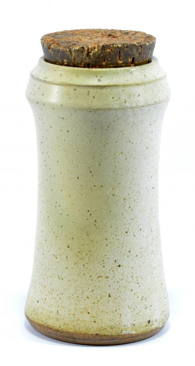 Lot 71 of 668: MICHAEL CASSON (1925-2003); a stoneware storage jar and cork cover, oatmeal glaze, impressed MC mark, height (excluding cork) 23.5cm. (D)