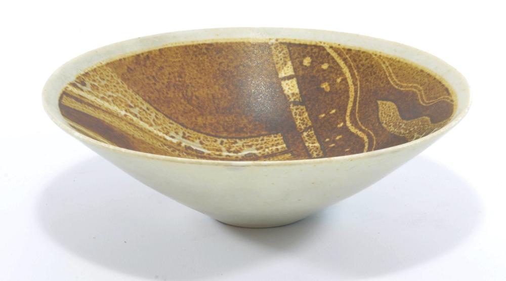 Lot 73 of 668: SHEILA CASSON; a porcelain landscape bowl, impressed mark, collection label, diameter 19cm. (D) Provenance: The Burgin Collection.