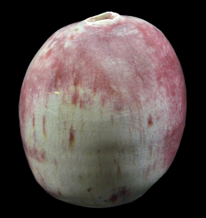 Lot 74 of 668: DEREK DAVIS (1926-2008); a porcelain pebble vase covered in copper red and celadon glaze, painted signature, height 10.5cm. (D)