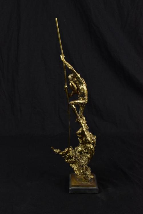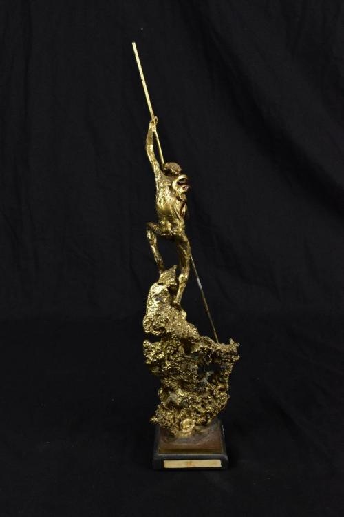 Lot 7 of 1148: SEAN RICE (1931-1997); a bronze and copper figure, 'Poseidon', raised on a polished black slate base, apparently unsigned, height to tip of staff 42cm. (D)