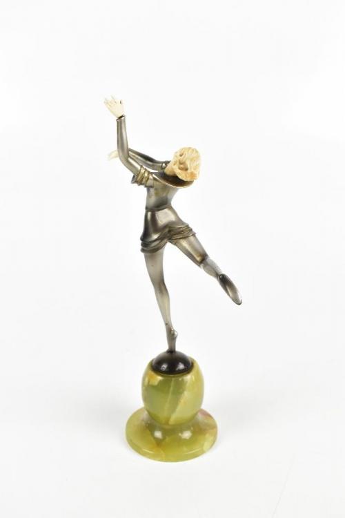 Lot 10 of 1148: STEFAN DAKON (1904-1992); an Art Deco silvered bronze figure with ivory head and hands on onyx socle base, height 25cm. (D)
