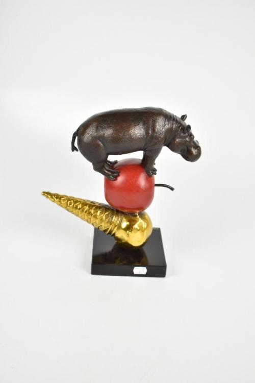 Lot 14 of 1148: GILLIE & MARC; a contemporary bronze limited edition sculpture, 'The Hippo Just Wanted an Apple and Ice Cream', signed and numbered 3/25 to plinth base, complete with Certificate of Authenticity, height 31cm.
