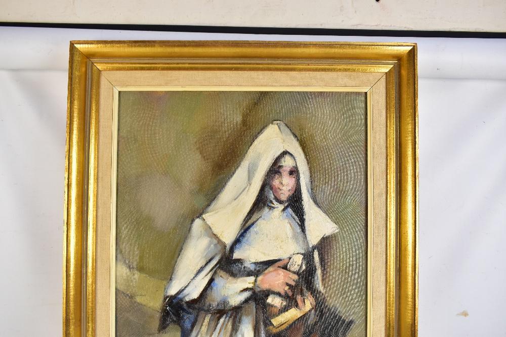 Lot 511 of 1148: HAROLD RILEY DL, DLitt, FRCS, DFA, ATC (Born 1934); oil on canvas, ‘Nun from Salford’, signed and dated 65, 75.6 x 40.6cm, framed. (D) Provenance: Private Collection London. The Mrs Westwall Collection.