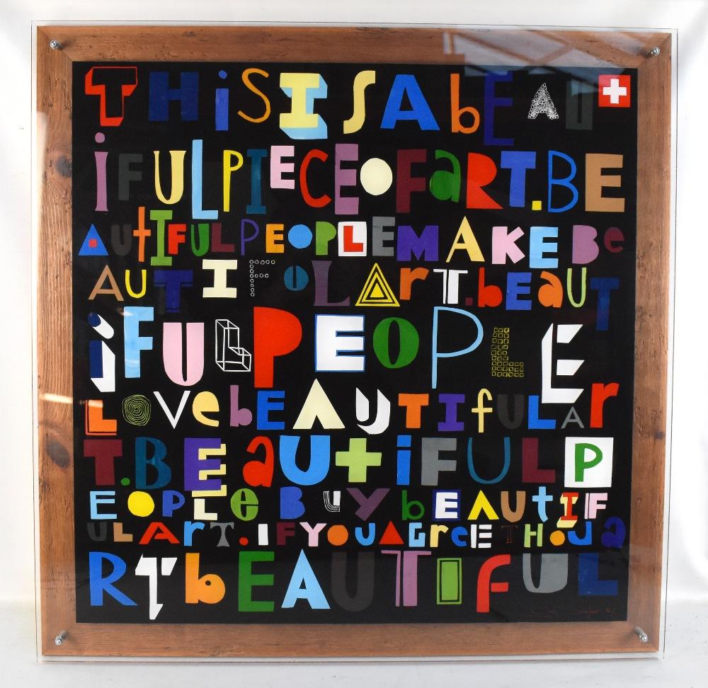 Lot 513A of 1148: CLAY SINCLAIR; oil on plexiglass “This is a Beautiful Piece” signed and dated 07 lower right, 80 x 80cm.