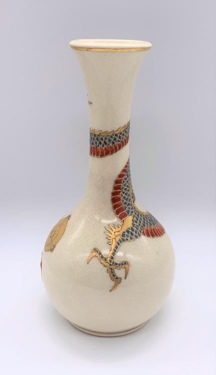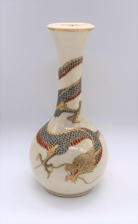 Lot 29 of 1030: A Japanese Meiji period Satsuma vase decorated with a single dragon on a cream ground, unsigned, height 15.75cm.
