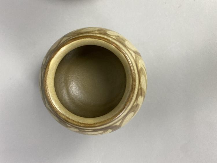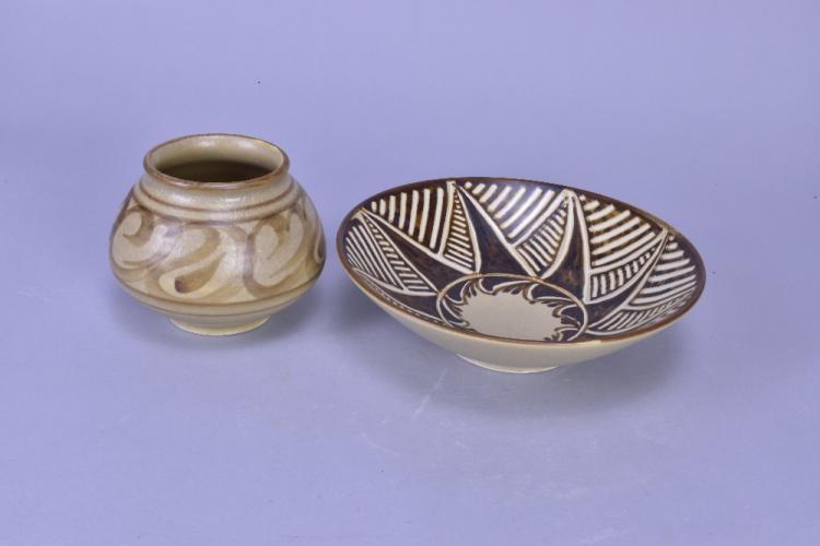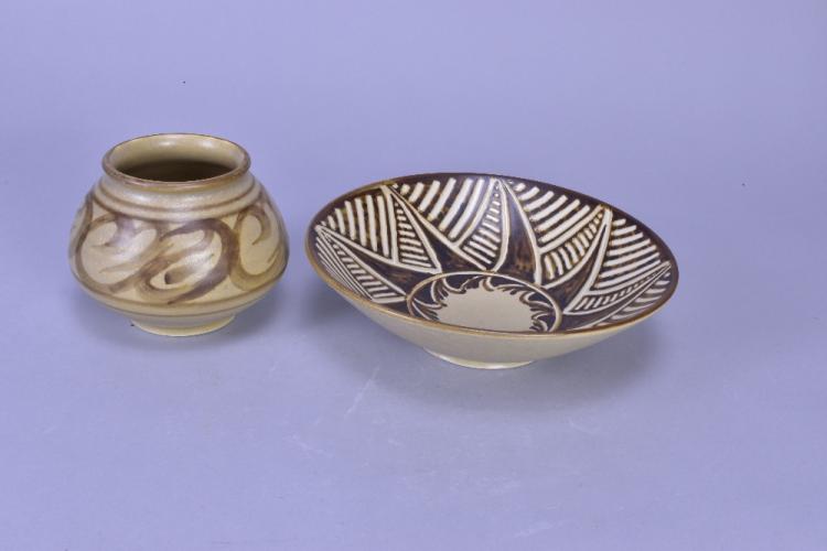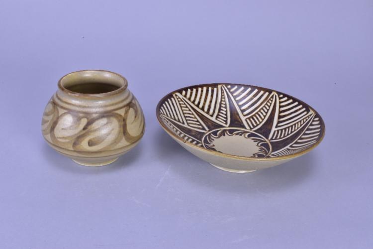 Lot 5 of 473: AGNETE HOY (1914-2000) for Bullers; a stoneware open bowl with incised sunburst decoration, impressed marks, diameter 21cm, and a small vase (2). (D)