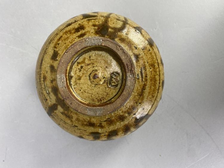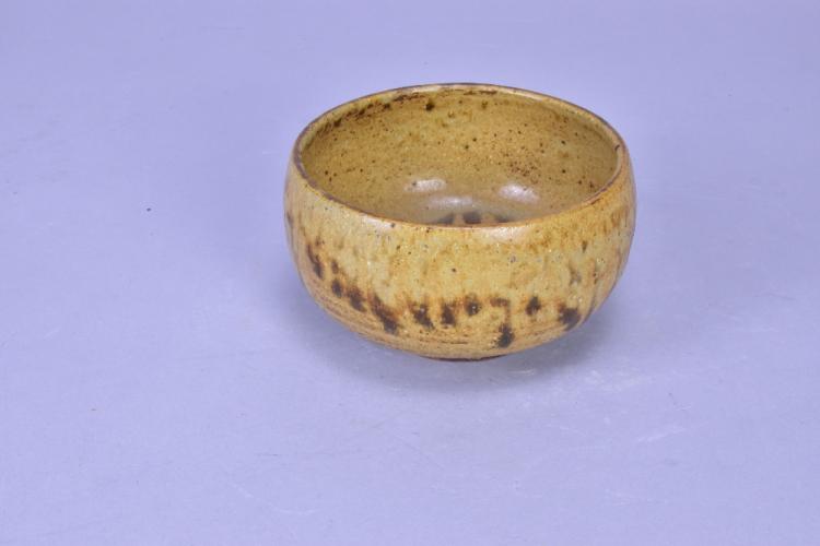 Lot 21 of 473: ANDREW MARSHALL (born 1952); a stoneware bowl covered in ash and iron glaze, impressed AM mark, diameter 13.5cm. (D) A form commonly made by William Marshall, but emulated by his son Andrew after his father's death.