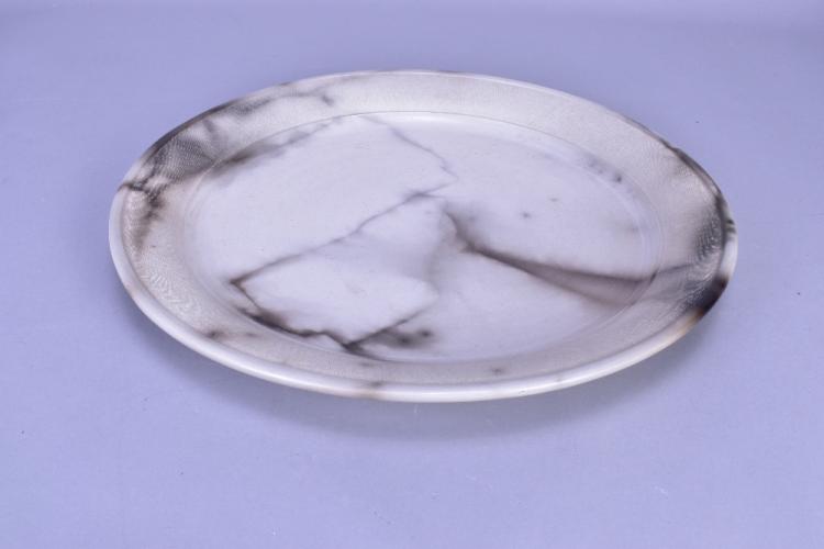 Lot 26 of 473: ANTONIA SALMON (born 1959); a large smoke fired stoneware platter, burnished with incised rim, incised AS mark, diameter 38.5cm.