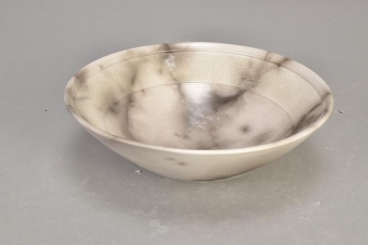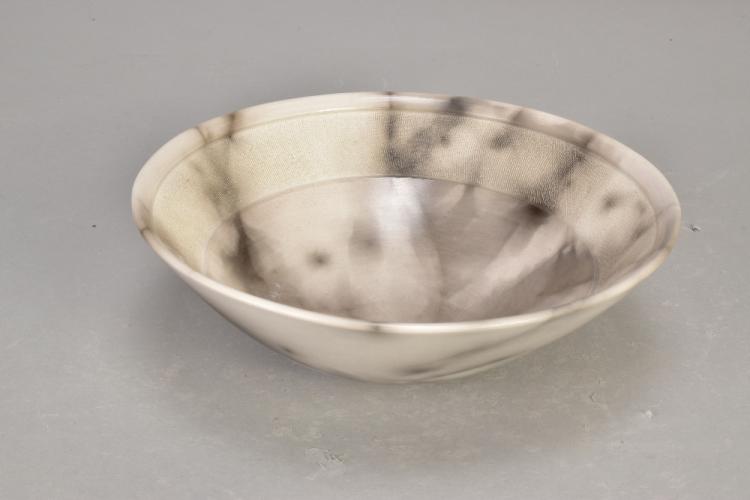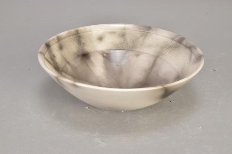 Lot 28 of 473: ANTONIA SALMON (born 1959); a smoke fired stoneware bowl, burnished with incised decoration, incised AS mark, diameter 20.5cm.