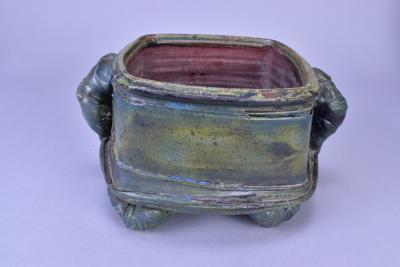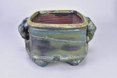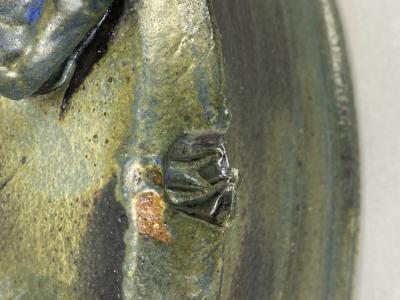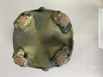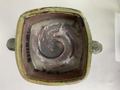 Lot 58 of 473: CHARLES BOUND (born 1939); an early stoneware twin handled vessel covered in metallic green glaze, impressed mark, height 17cm.