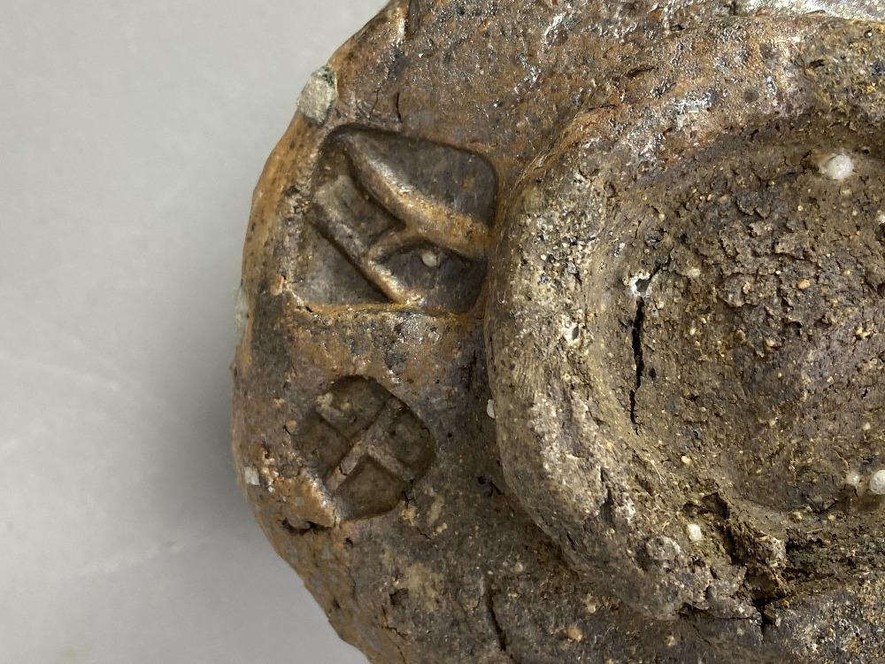 Lot 60 of 473: CHARLES BOUND (born 1939); a wood fired stoneware teabowl, impressed marks, height 10cm.