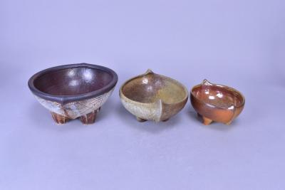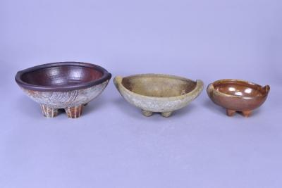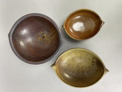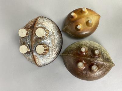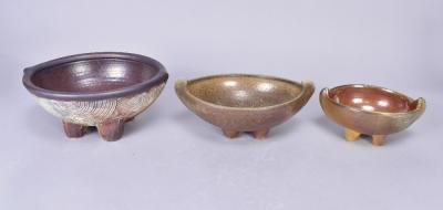 Lot 71 of 473: CHRIS LEWIS (born 1951); three stoneware footed melon bowls with various patterns, largest diameter 26cm (3). (D)