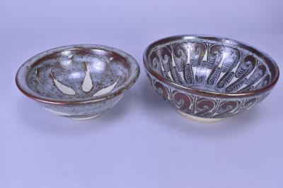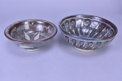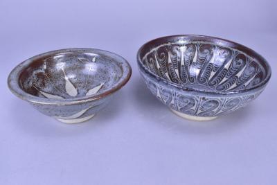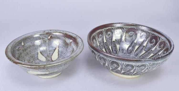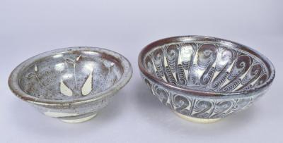 Lot 73 of 473: CHRIS LEWIS (born 1951); two stoneware bowls with various patterns, largest diameter 23cm (2). (D)