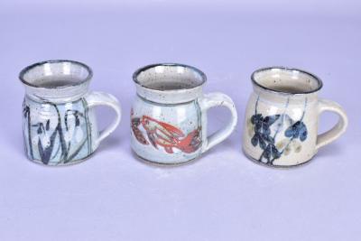 Lot 83 of 473: COLIN KELLAM (born 1942); a group of six stoneware mugs, various decorations, impressed marks, tallest 9cm (6). (D)