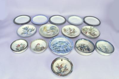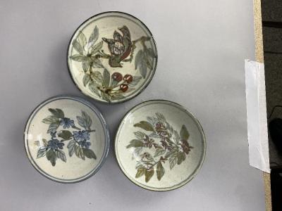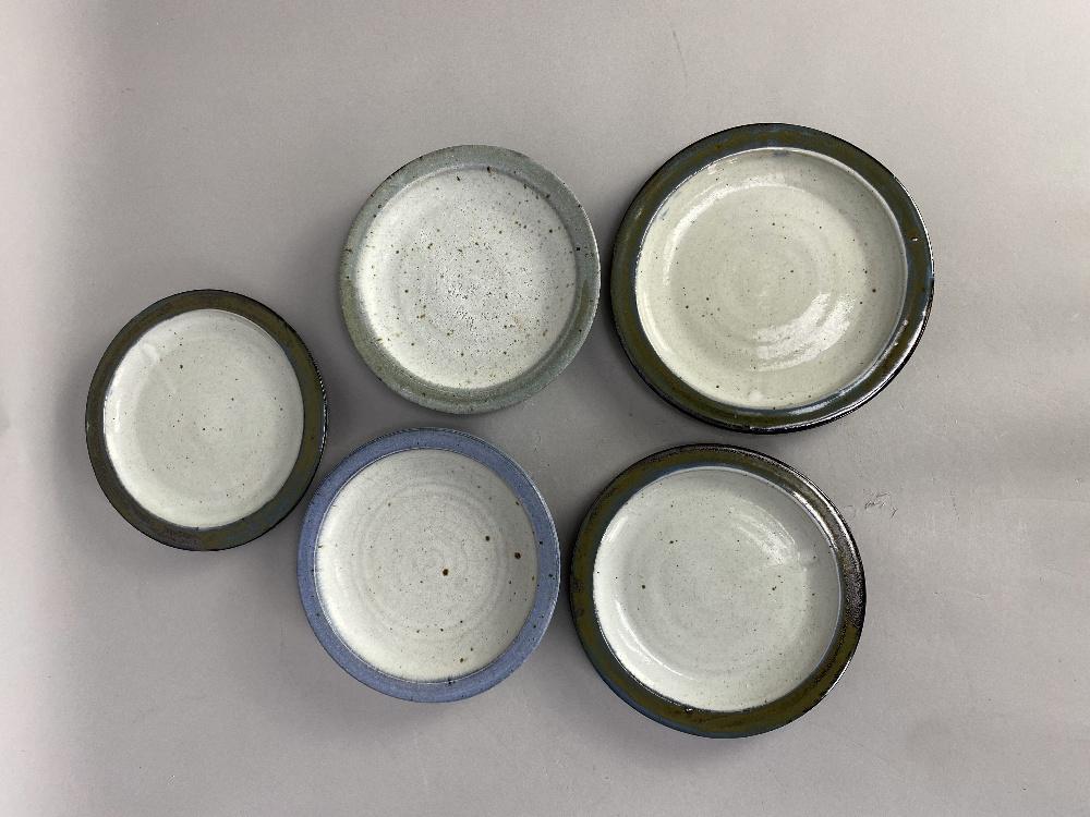 Lot 85 of 473: COLIN KELLAM (born 1942); a group of stoneware side plates and small dishes, various decorations, impressed marks, largest diameter 20.5cm (15). (D)