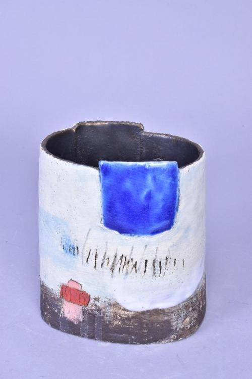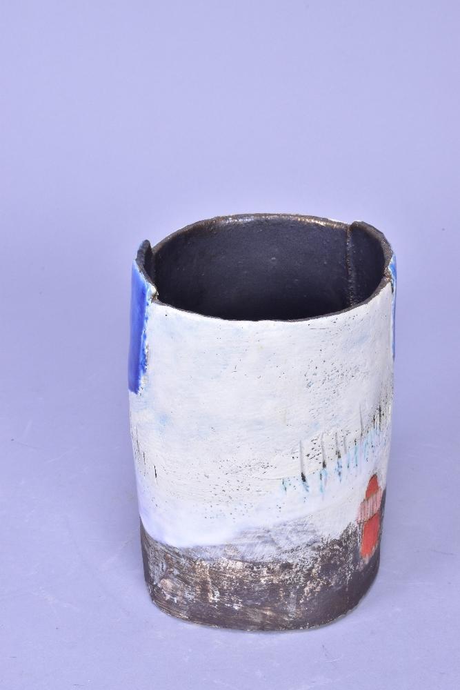 Lot 96 of 473: CRAIG UNDERHILL (born 1968); an oval earthenware vessel, 'Red Post', incised signature, height 14.5cm.
