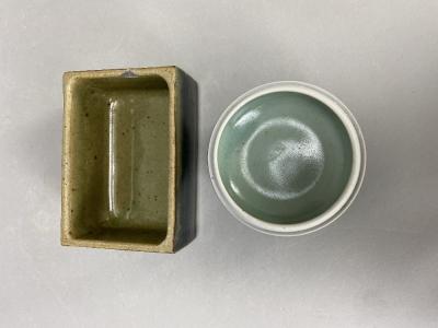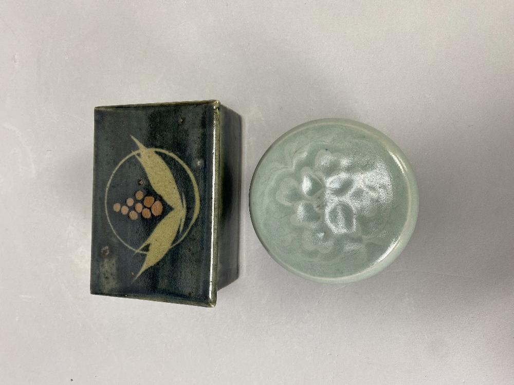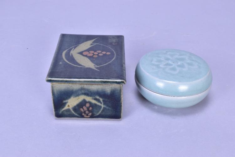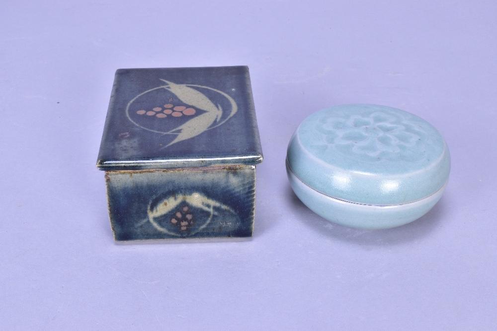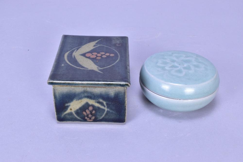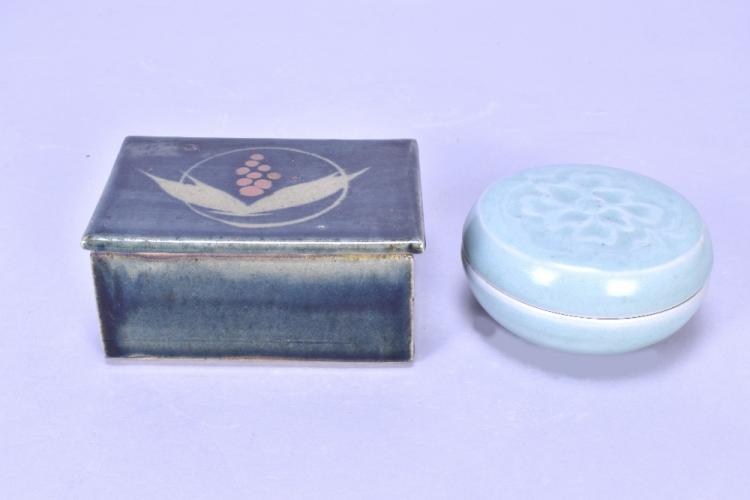 Lot 98 of 473: DAVID FRITH (born 1943) for Brookhouse Pottery; a rectangular stoneware box and cover, impressed pottery mark, 12.5 x 9cm, and a Margaret Frith porcelain box and cover (2). (D)