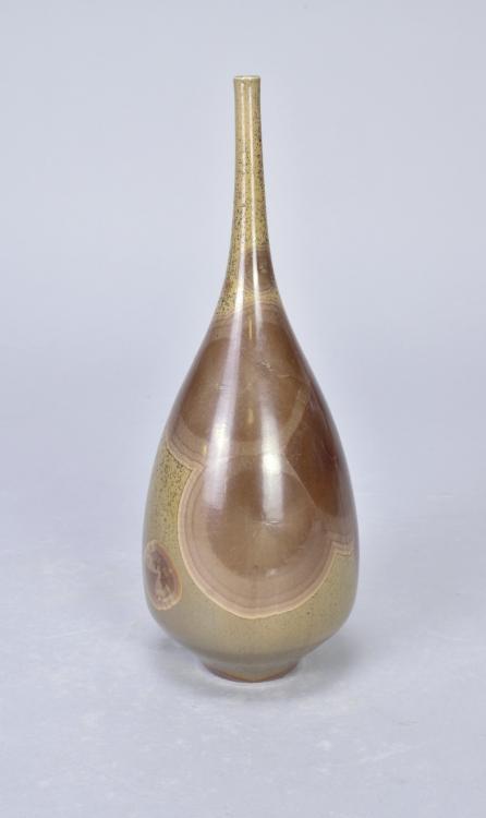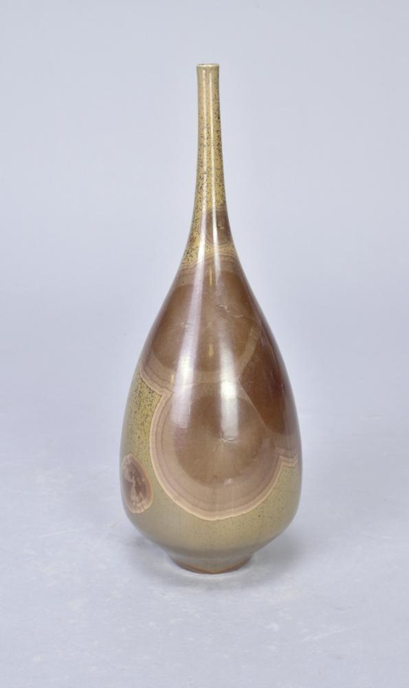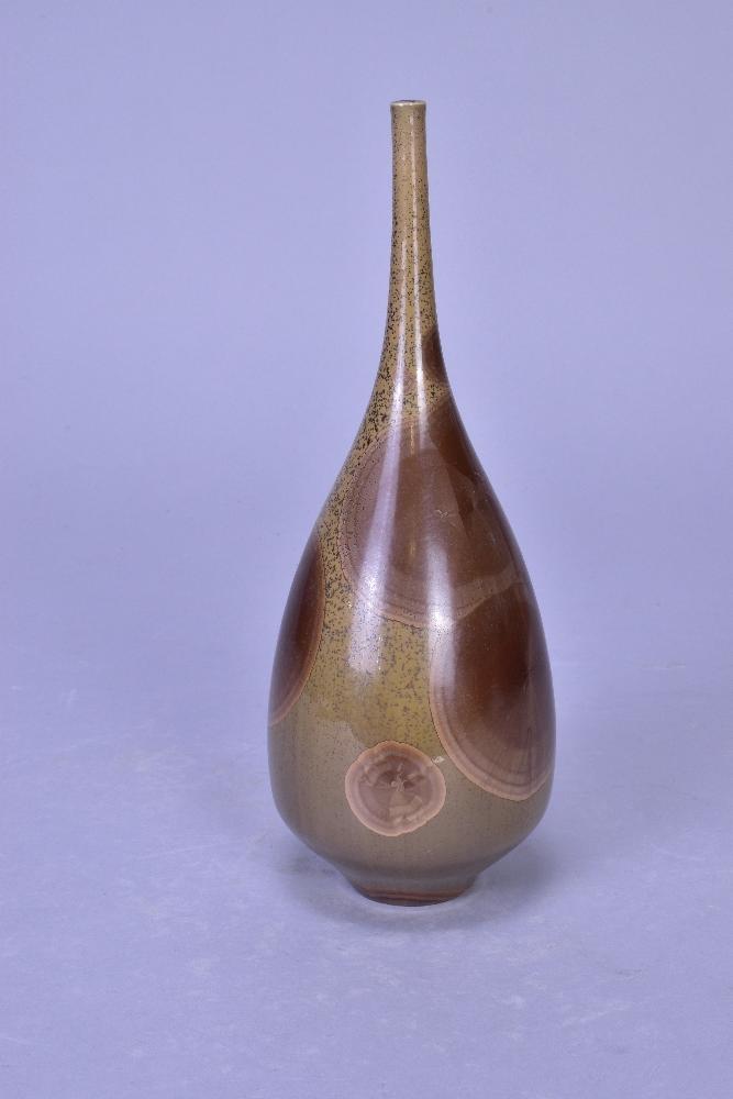 Lot 109 of 473: DEREK CLARKSON (1928-2013); a porcelain narrow necked bottle covered in crystalline glaze, impressed DC mark and date code, height 21cm. (D)