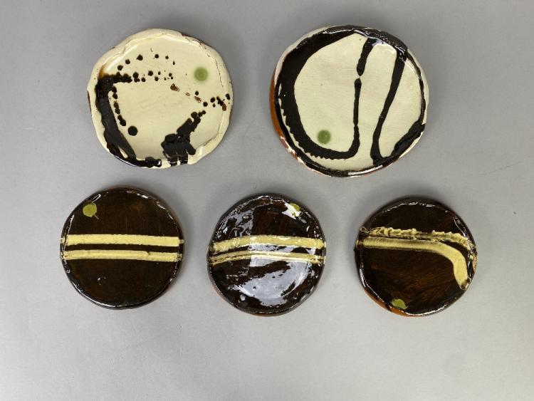 Lot 112 of 473: DYLAN BOWEN (born 1967); a group of five slipware plates, painted signatures, largest diameter 18cm (5). (D)