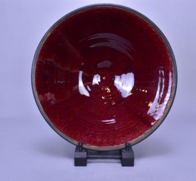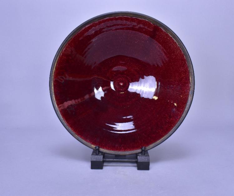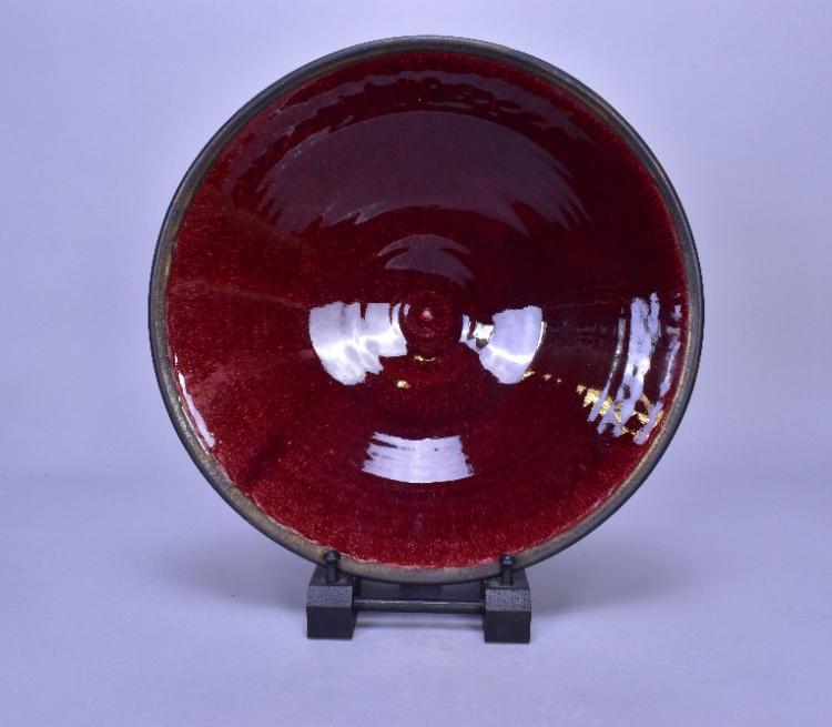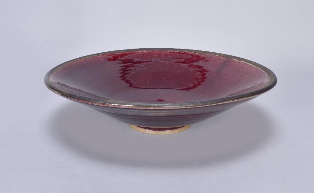 Lot 114 of 473: EDDIE CURTIS (born 1953); a large stoneware open bowl covered in streaky copper red glaze with bronze rim, diameter 37.5cm. (D)