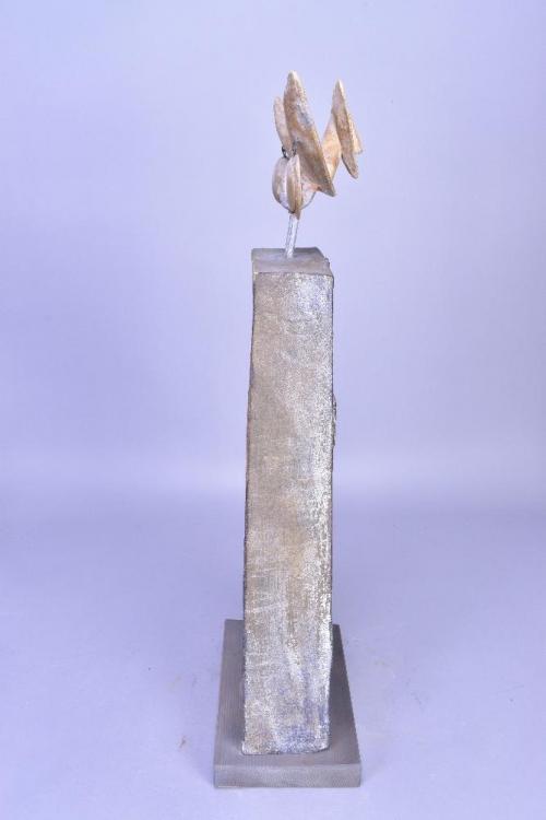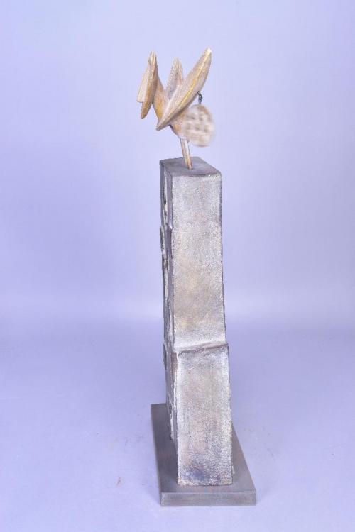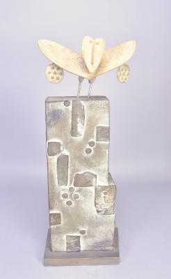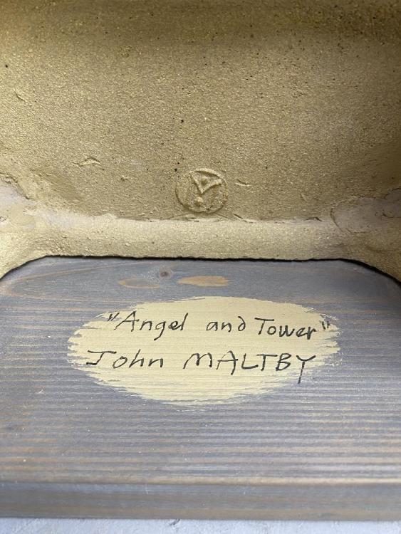 Lot 205 of 473: JOHN MALTBY (born 1936); a tall stoneware sculpture, 'Angel and Tower', impressed M mark and painted signature, height 63.5cm. (D)