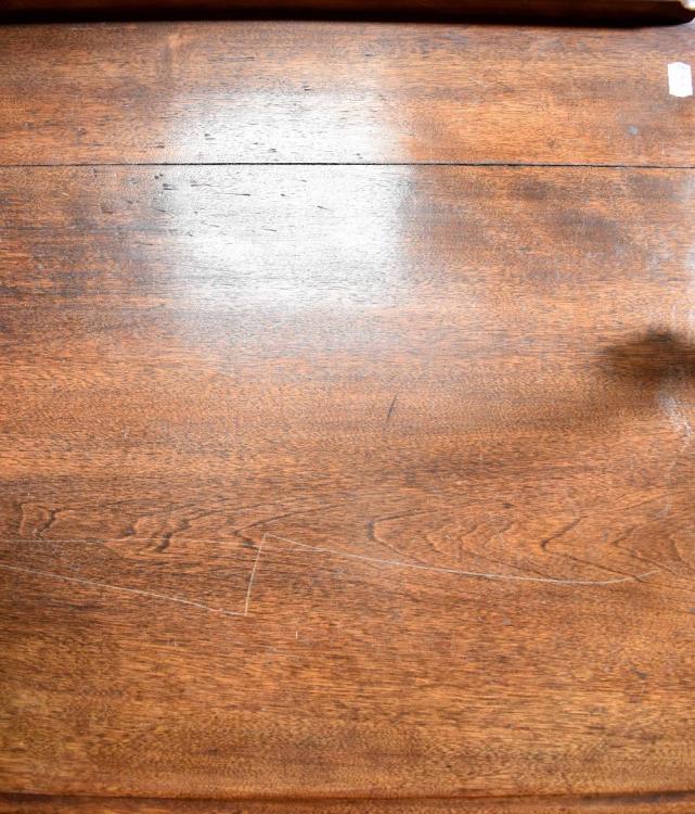 Lot 42A of 983: An Edwardian mahogany kneehole desk, one central frieze drawer with two drawers to either side, to turned baluster supports and peg feet, length 122cm.