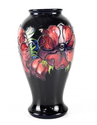 Lot 320 of 983: A Moorcroft 'Anemone' pattern vase of baluster form, blue ground, green impressed mark, painted green initials BM, height 25.5cm.
