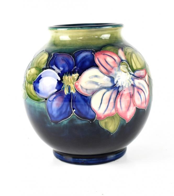 Lot 321 of 983: A Moorcroft 'Anemone' pattern vase of bulbous form, blue ground, impressed signature in blue, stamped 'Potter to The Queen', signed Walter Moorcroft, height 20cm.