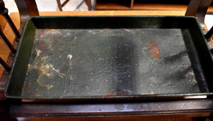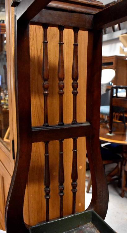 Lot 34 of 713: A 19th century mahogany stick stand with double single division, lyre sides with bobbin turned spindles and tin drip tray, height 75cm.