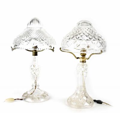 Lot 181A of 713: Two Edwardian cut glass mushroom-form table lamps, height of largest 47cm (2).