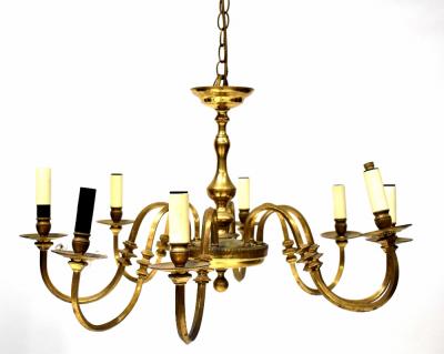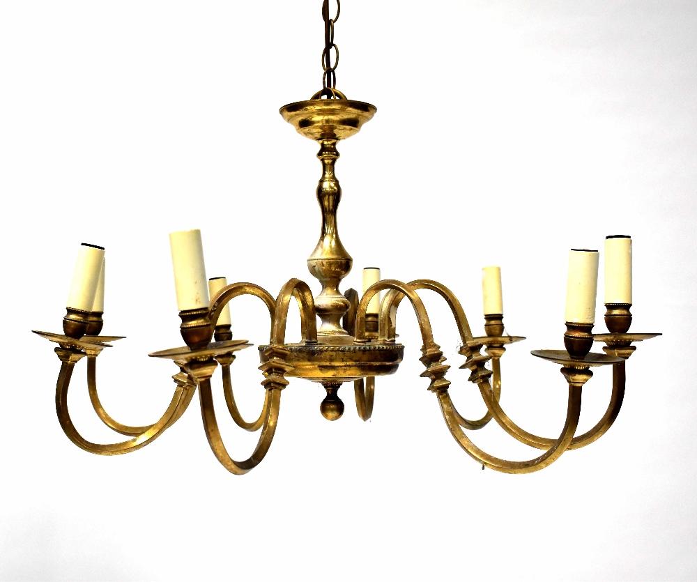 Lot 184 of 713: A pair of eight-branch brass electroliers with scroll arms on circular base, height 45cm (2).
