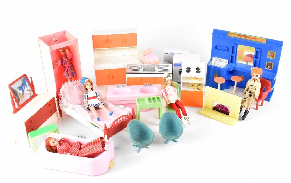 Lot 468 of 713: A small group of Palitoy Pippa dolls' house furniture to include 'Pippa's Hair Salon' etc, four Palitoy Pippa dolls in various outfits and a similar unbranded doll, also a boxed Schuco Tronic BMW Turbo remote controlled car no.351252,