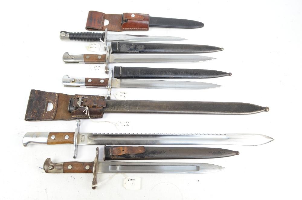 Lot 176 of 2078: Five Swiss bayonets; 1914, 1918, 1911, 1918 and SIG57 (5).