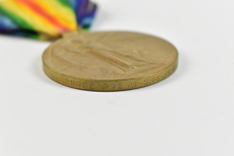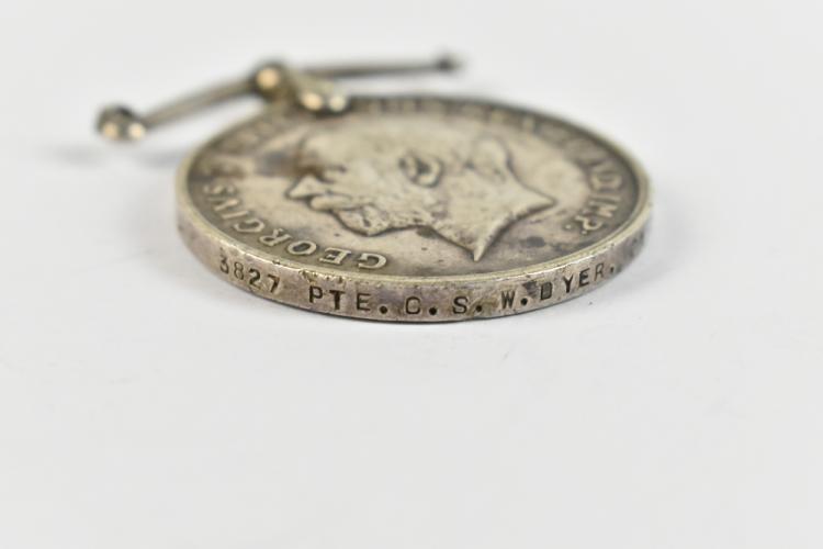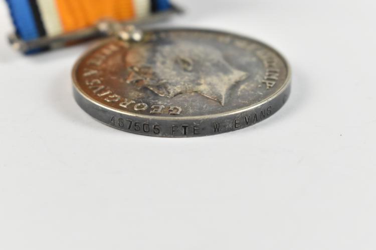 Lot 5 of 1032: Six World War I Medals comprising a War and Victory duo awarded to 487505 Pte. W. Evans C.A.M.C., two single War Medals awarded to 108445 Spr. C.O'Halloran R.E. and 3827 Pte. C.S.W. Dyer 21-Lrs. and two single Victory Medals and a South African example awarded to 29692 Pte. A.S.J. Swan Norf. R. and Dvr. D. McD. Scot S.A.S.C. respectively, also a K.V.F. Invicta badge and a British Legion button.